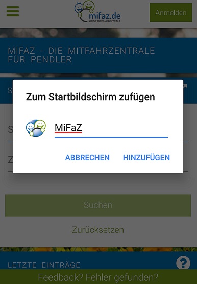 Webseite www.mifaz.de aufrufen. Dann oben im Kontextmenü "Zum Startbildschirm hinzufügen" aufrufen